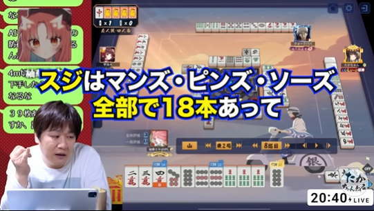 今回は多井隆晴プロの「たかちゃんねる」より、紬華ミキさんのコーチング動画「受けるか攻めるか迷った時の答えはコレ!」を要約してみました。 この動画は、多井隆晴プロが紬華ミキさんの牌譜を見ながら、 「押すべきか、降りるべきか」 の判断基準を丁寧...